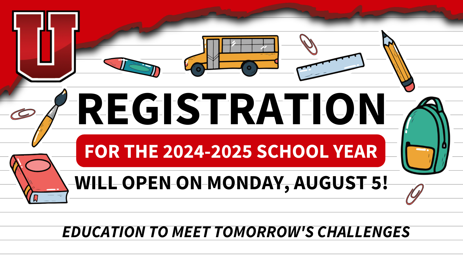 REMINDER: Online registration for the 2024-2025 school year will open on Monday, August 5. 📝