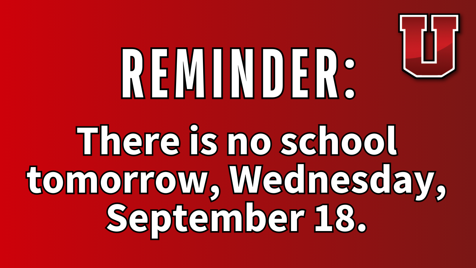 Reminder: There is no school tomorrow, Wednesday, September 18, as students and staff will attend the memorial services for Gavin Rohrbach.